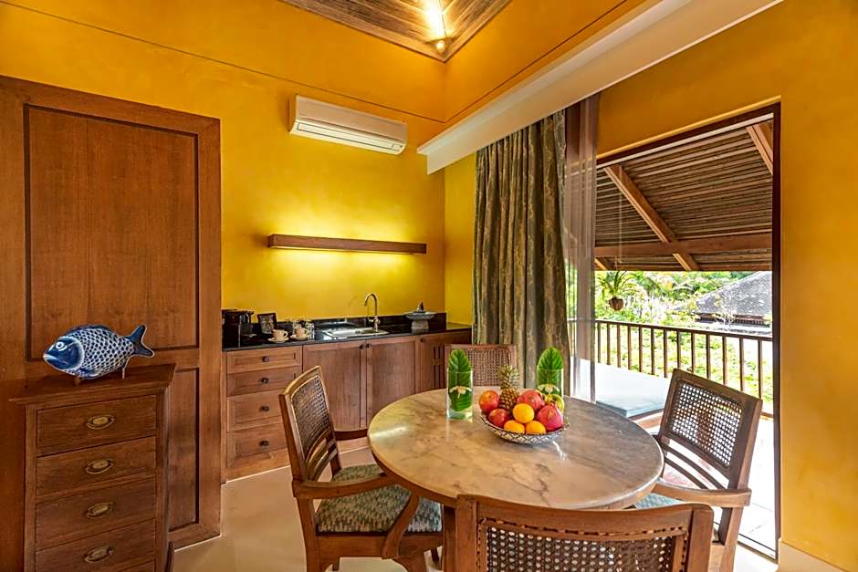 Your spacious bathroom is complete with Traditional Thai bath amenities while the guest room features individually controlled air conditioning & ceiling fan, complimentary high speed Wi-Fi, LED streaming television, Bluetooth sound bar, IDD Telephone, bathrobes, custom bath amenities, hairdryer, private laptop size safety box, complimentary refreshment center & complimentary Nespresso machine as well as a private pocket garden for relaxing in ultimate privacy.
